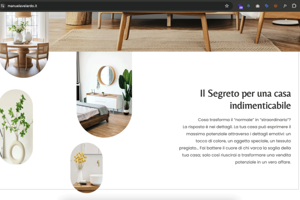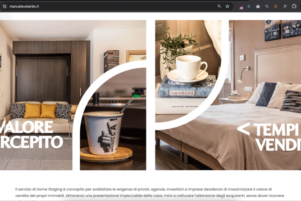Il sito web offre un’immersione nel mondo della scenografia teatrale e dell’home staging di Manuela Velardo, la navigazione è chiara e intuitiva.